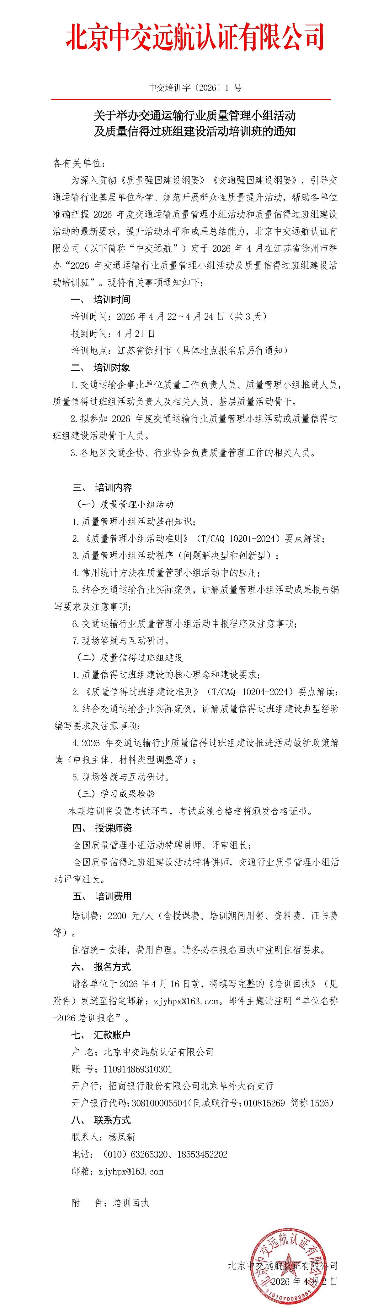 2026(1)号+交通企业QC及质量信得过班组培训通知