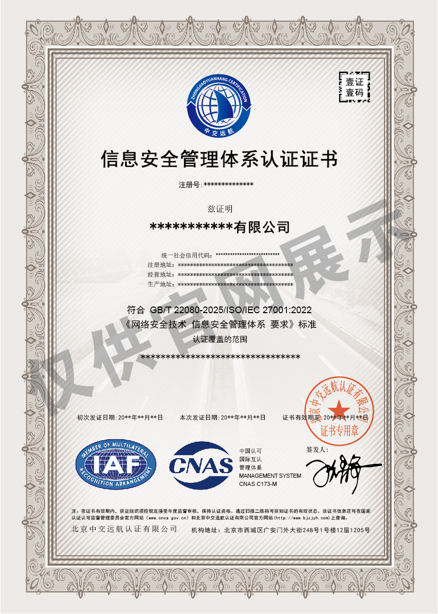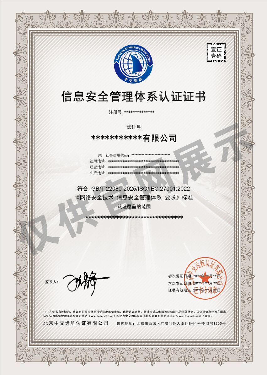 信息安全管理体系认证规则认证证书
