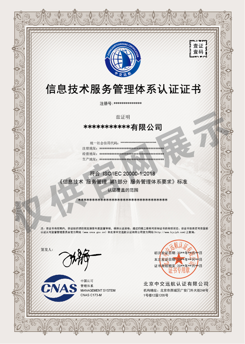 信息技术服务管理体系认证证书