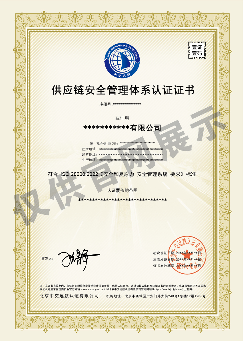 供应链安全管理体系认证证书
