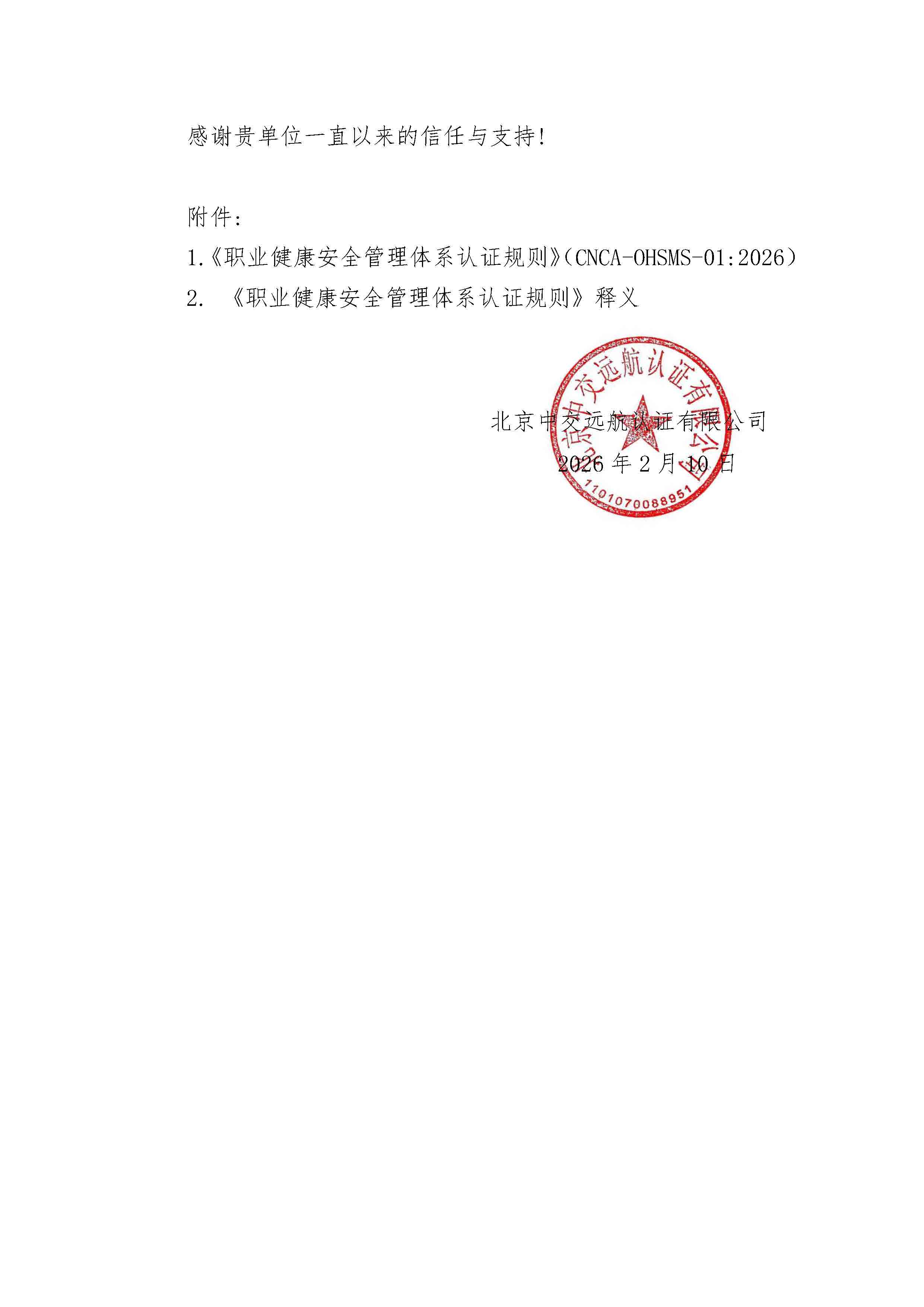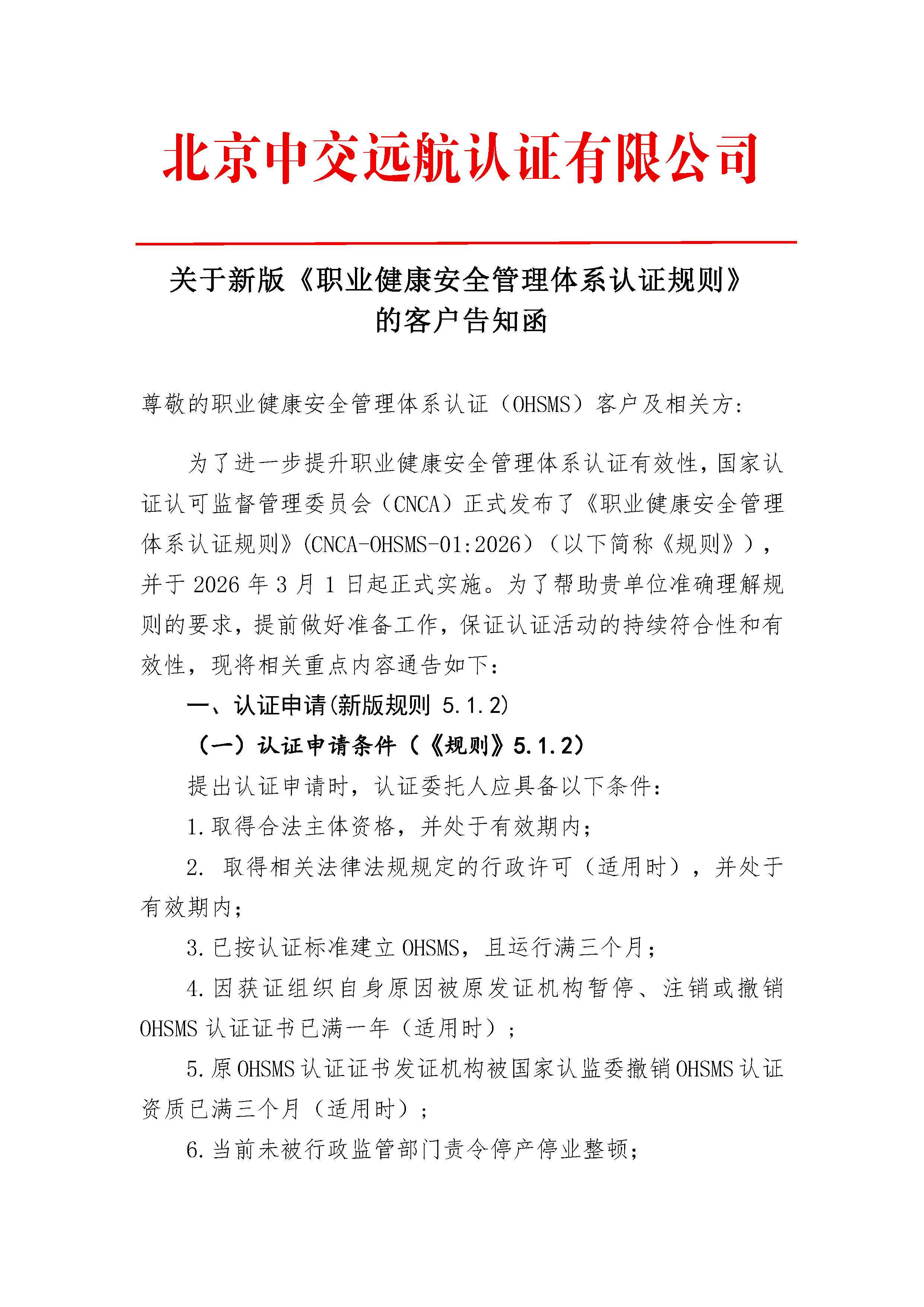 新版管理体系认证规则告知函(S)